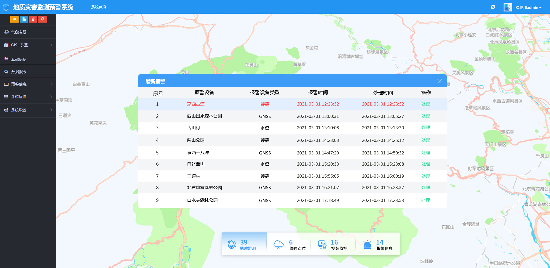采用國家氣象局數據,對各類型氣象進行實時監測和分析,生成預警信息和輔助決策信息提前預知氣象變化情況
